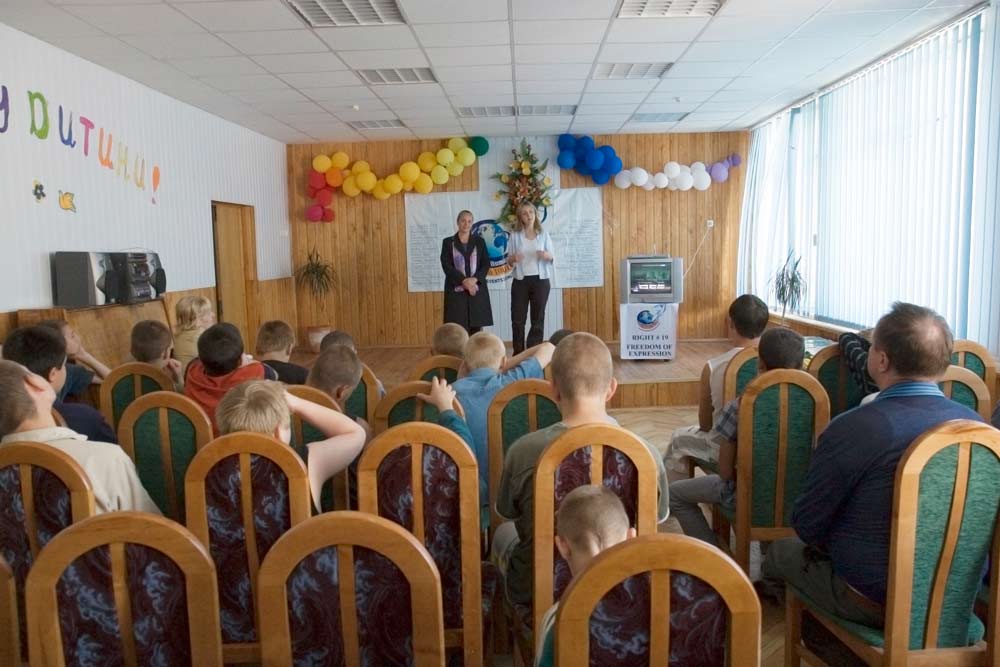 Nel corso del prossimo anno, circa 1.500 bambini perduti o fuggiti in età compresa tra i 3 e i 18 anni passeranno fino a tre mesi presso l’orfanotrofio del Comune di Kiev per giovani e adolescenti. È stato con un gruppo di questi giovani che Youth for Human Rights International (YHRI) (Gioventù per i Diritti Umani Internazionale) ha affrontato l’importanza dei diritti umani.